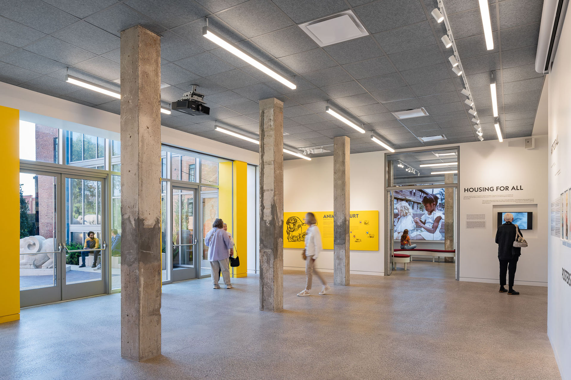 The project scope includes restoration of the existing masonry walls and concrete structure, as well as installation of a new roof, windows, MEP systems, and life safety systems to meet the museum's operational demands. A new entry canopy, vestibule, and lobby face Ada Street, while new elevator and stair towers off the courtyard provide access and emergency egress from all levels. The west side of the first floor has been lowered to provide accessible at-grade entry and create a larger entry lobby and event space with access to a courtyard. This courtyard houses seven restored historic animal sculptures by Edgar Miller that were the original focal point of the Jane Addams Homes. Thirty-eight surface parking spaces are provided in a new lot on the north side of the building.